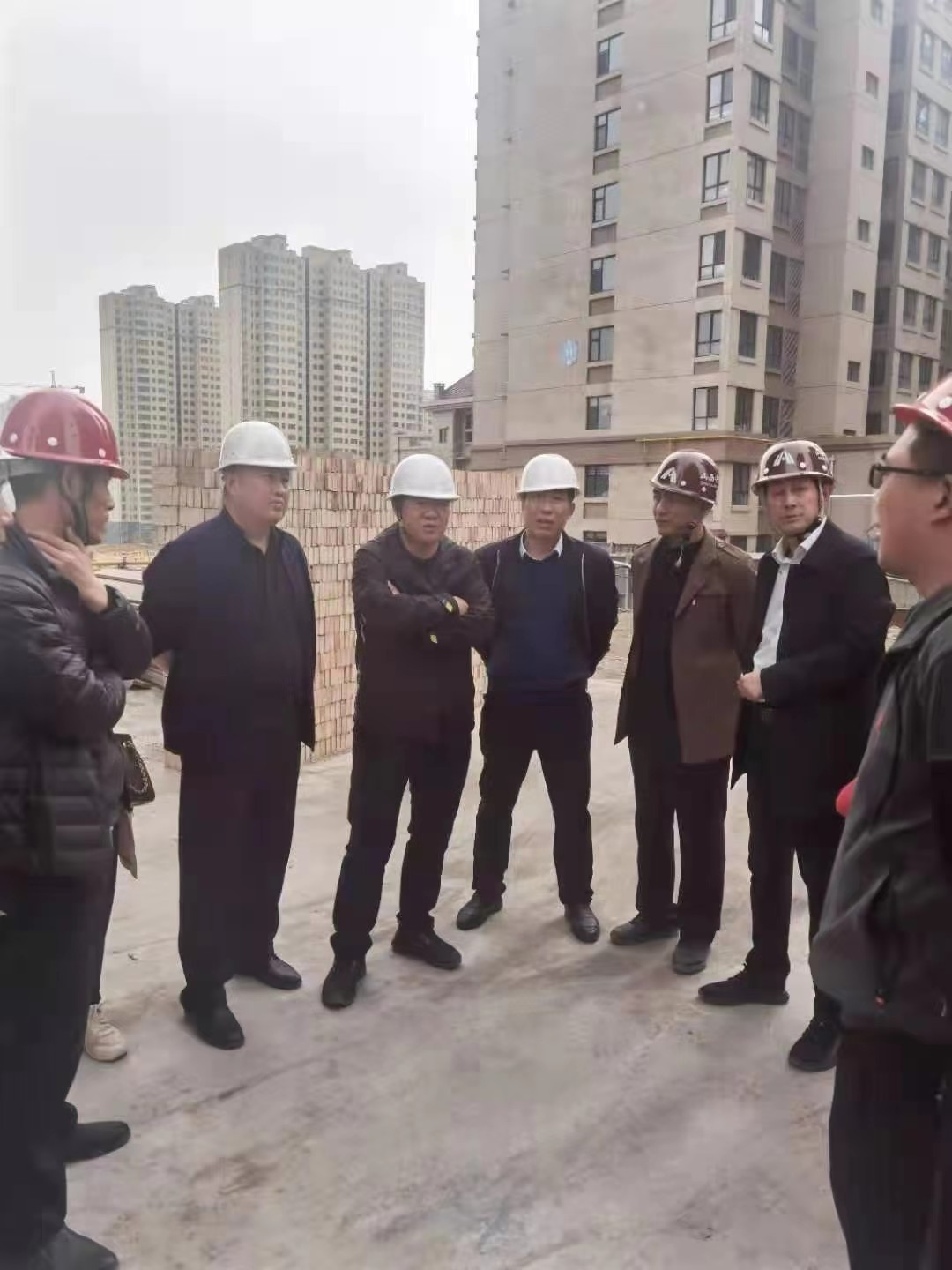 卫少华一行首先深入施工现场,仔细查看了项目施工进度、工程质量及安全文明施工等情况,随后深入C1#楼,对正在进行施工的砌体工程进行重点检查,在看到现场一片热火朝天的施工场景后,卫总对大家的工作激情给予了高度肯定,他要求项目部一班人要紧抓施工的黄金时期,坚持目标不放松,公司各职能部室要全力支持施工一线,确保项目各项工作有序开展。副总张成稳对现场存在的问题进行了指导,他要求:一是项目一班人要精心组织,科学施工,合理安排施工工序,加快剩余工程的施工进度,同时要高标准、严要求推进项目建设,以饱满的状态、奔跑的速度、实干的作风完成公司制定的各项指标;二是要以“技术”为突破口,严格按设计图纸、规范标准进行施工,同时作为公司自主开发项目,要深挖细究图纸,站在业主角度考虑问题,对图纸设计进行二次优化,合理降低工程成本,另外要做好创优策划,根据项目特色和技术特点,总结“科技成果”,为项目下一步创优做好准备工作;三是要加强质量管控,工程质量重在过程控制,要严格落实质量验收制度,对每个分项工程要做到一次成优;四是要加强进场材料的验收,不合格的材料杜绝进入施工现场。