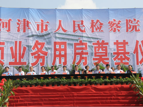 金色的五月,是百花盛开,生机盎然的美好时节。5月29日上午9时,在河津市延平街以西,彩旗招展,锣鼓喧天,鞭炮齐鸣,一派喜庆氛围,河津市人民检察院技侦业务用房奠基仪式在此隆重举行。
